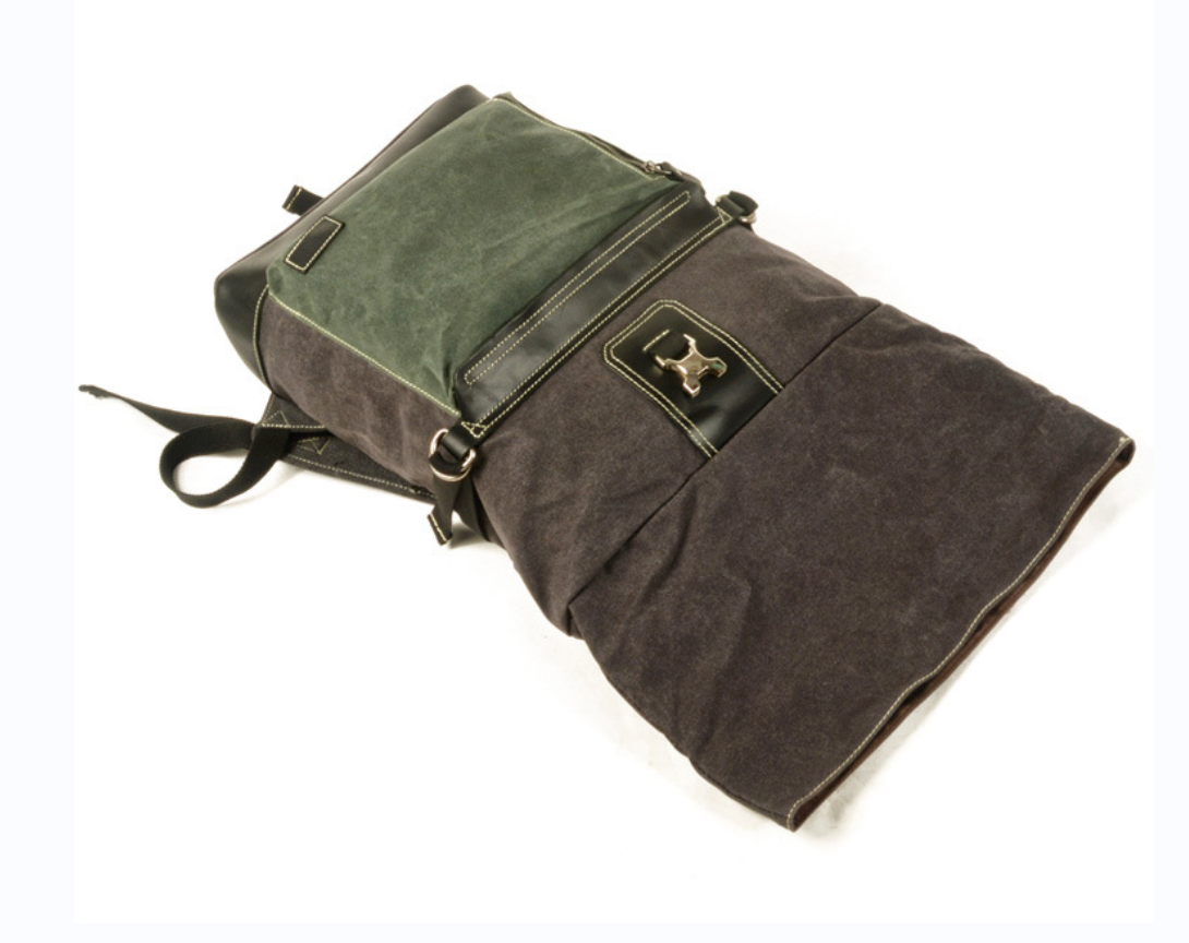 - Cotton lining, waxed canvas and reclaimed leather